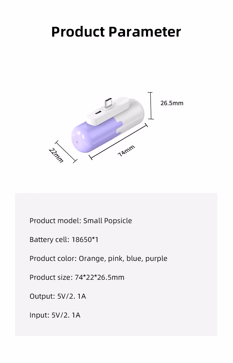 | Funzione | mini power bank, facile da trasportare, portatile, colorato |